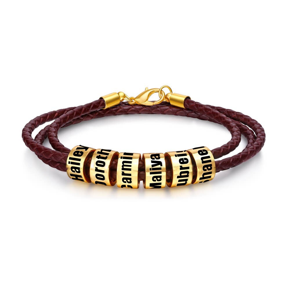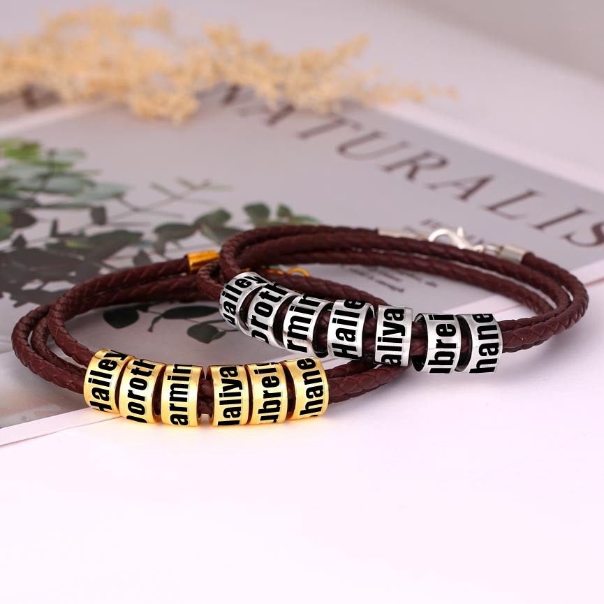 Bracelet Perles Cuir Marron Petite Perle Personnalisée en Argent