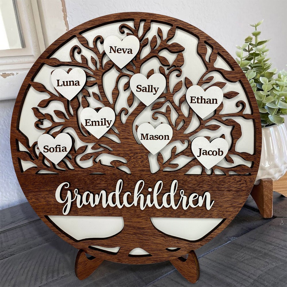 Custom Wooden Grandparents Family Tree Sign Engraved Names in Heart Gift for Mom Lovely Family Gift Mother's Day Gift for Grandma Anniversary Gift
