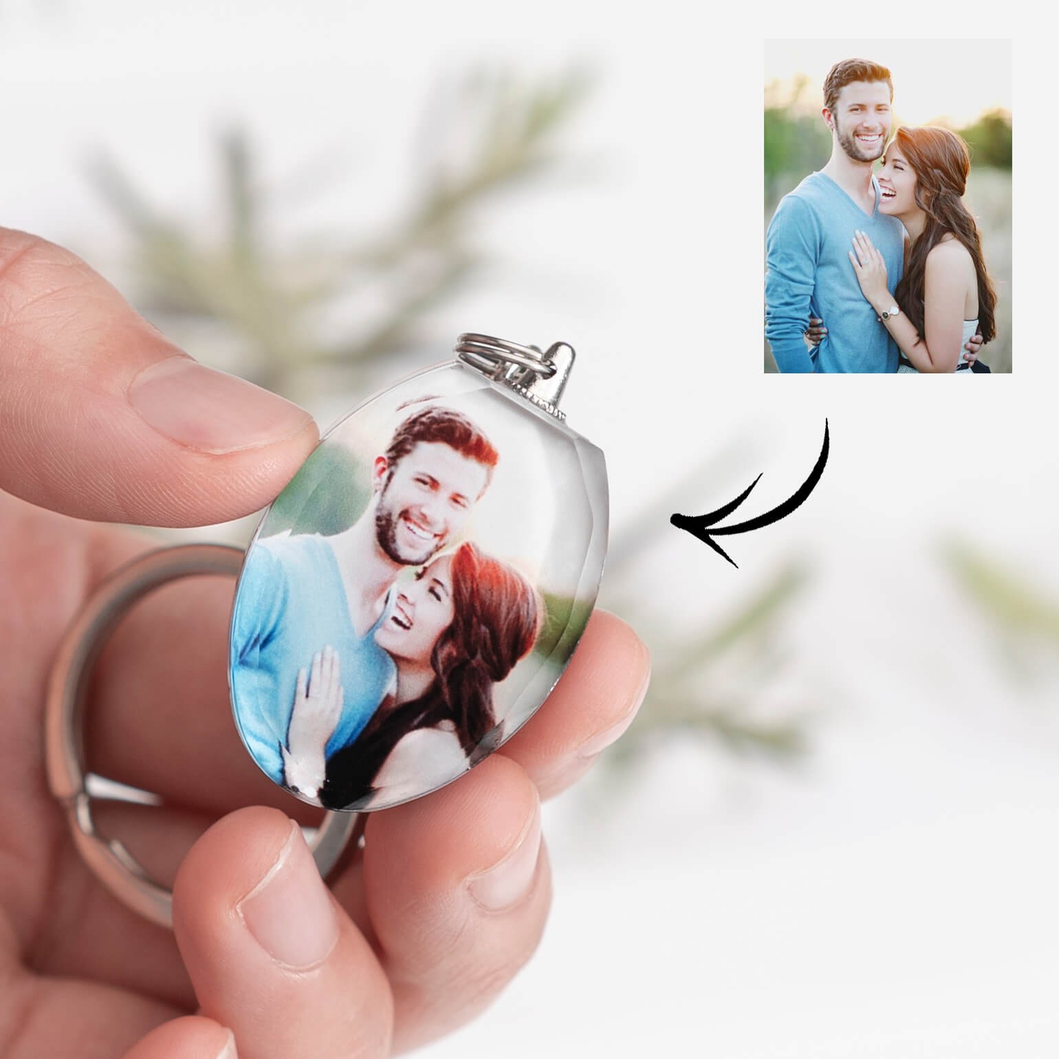 Personnalisez le cadeau en forme de coeur de porte-clés en cristal photo pour toutes les occasions