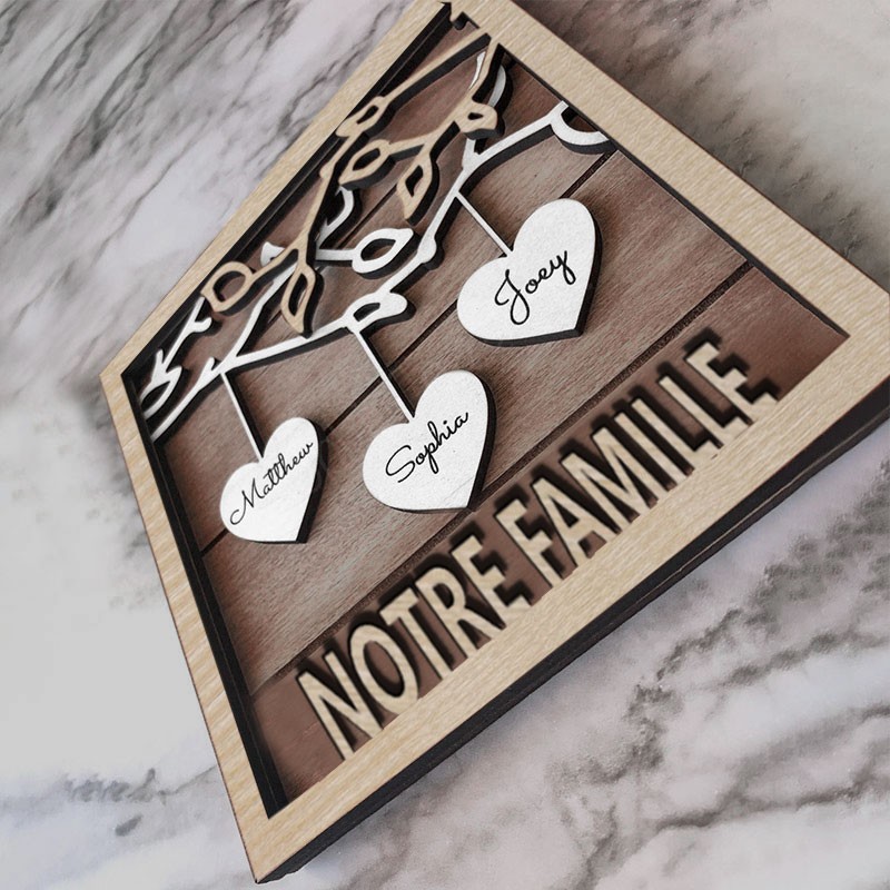 Gravures personnalisées de nom de signe de bois d'arbre généalogique Décoration murale à la maison