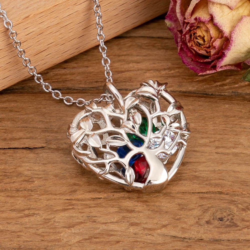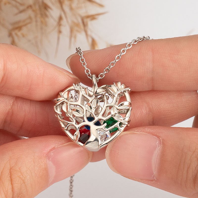Collier pendentif en forme d'arbre généalogique en forme de coeur avec 1-8 pierres de naissance