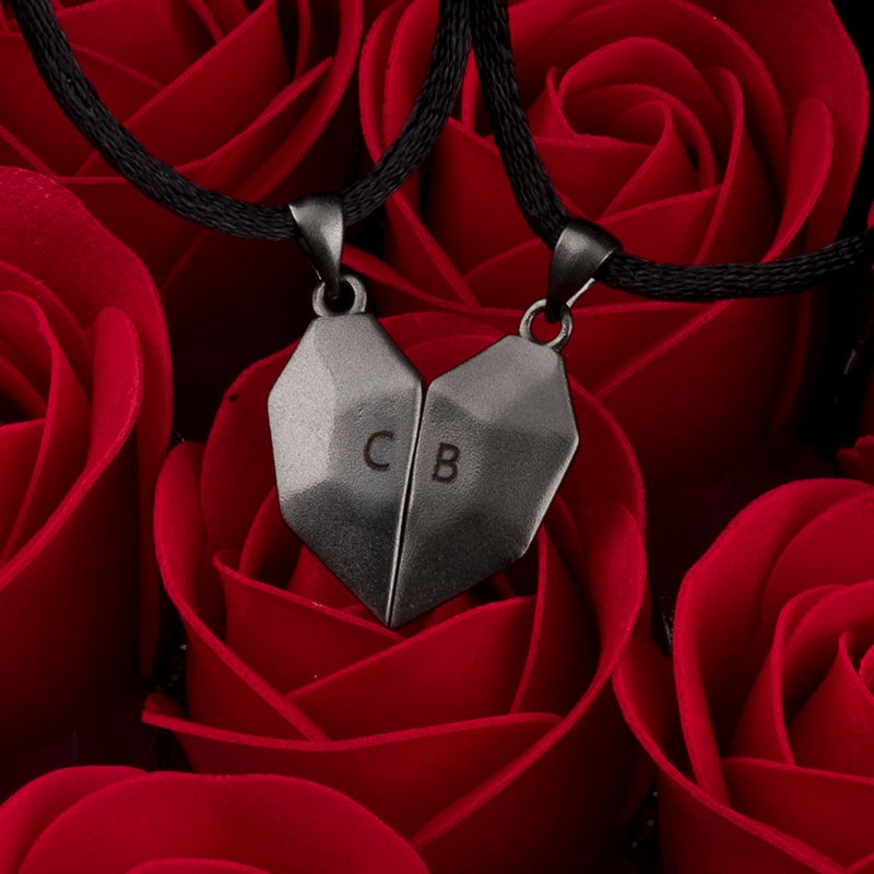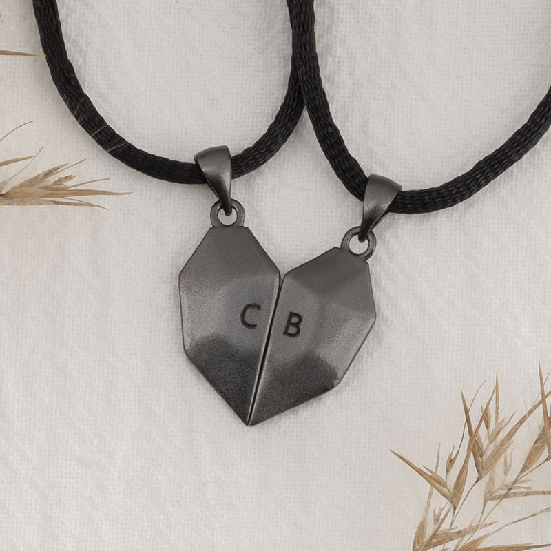 Collier Coeur Patchwork Magnétique 2 Pièces Personnalisé