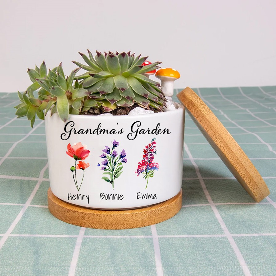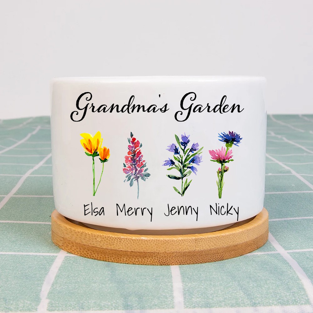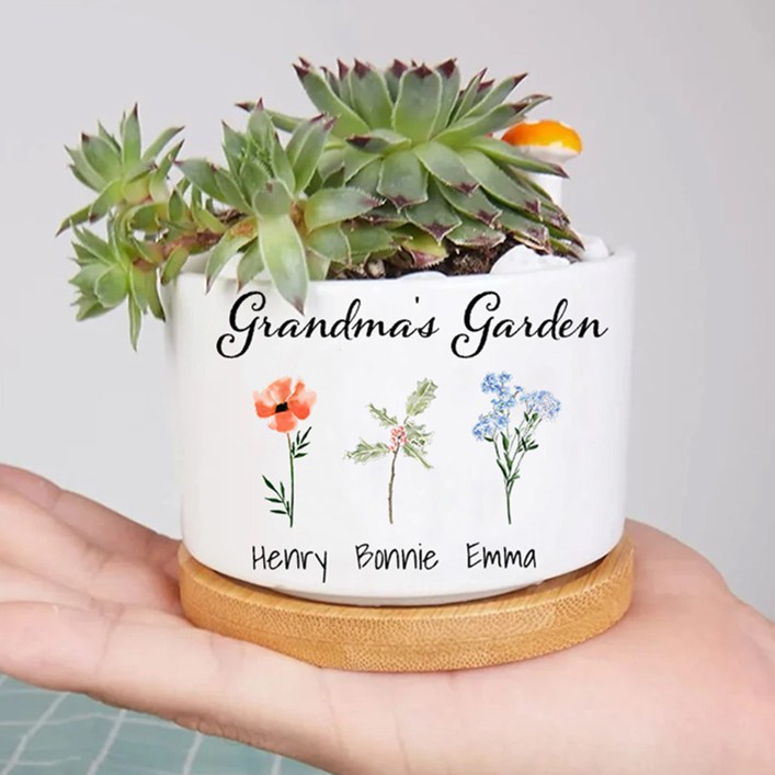 Personalized Birth Flower Succulent Planter Grandma's Garden Mini Plant Pot Mother's Day Gift Ideas