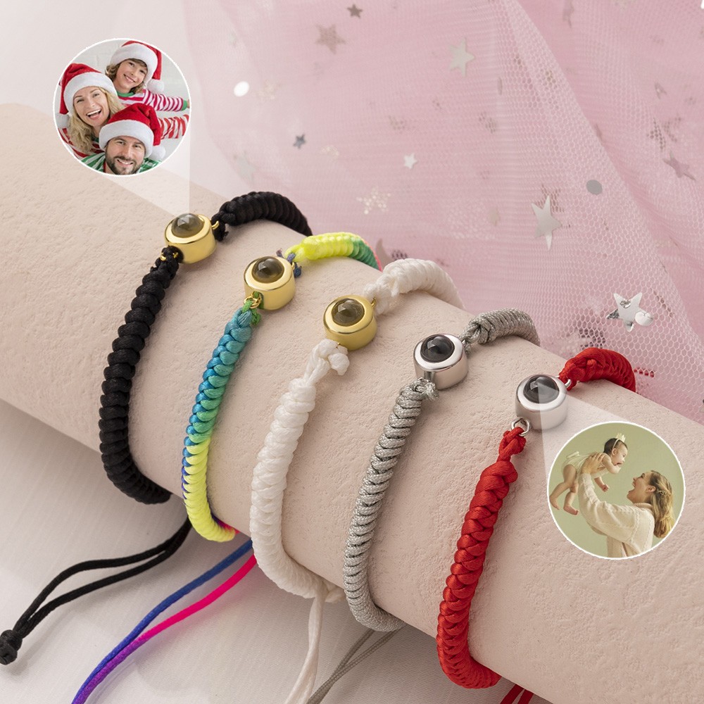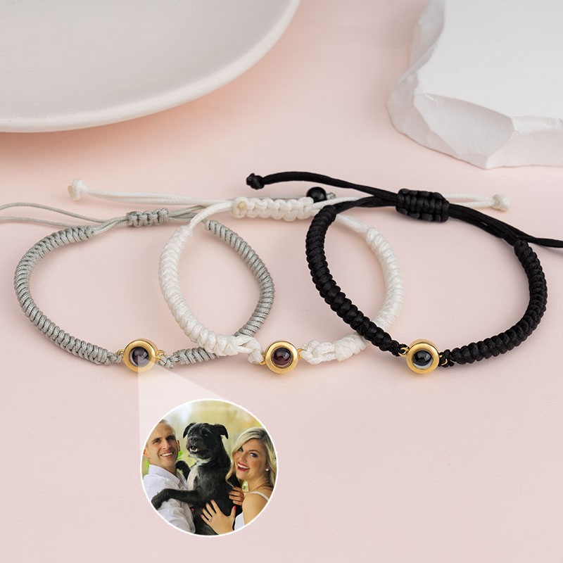 Bracelet à breloques personnalisé avec projection de photo commémorative en corde tressée avec photo à l'intérieur