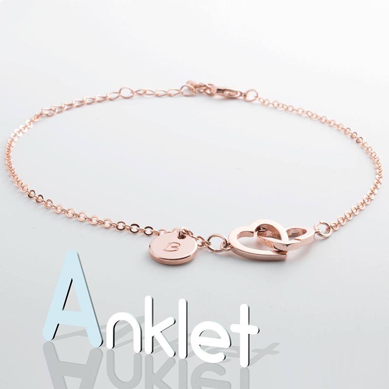Bracelet de Cheville Double Coeurs Personnalisé