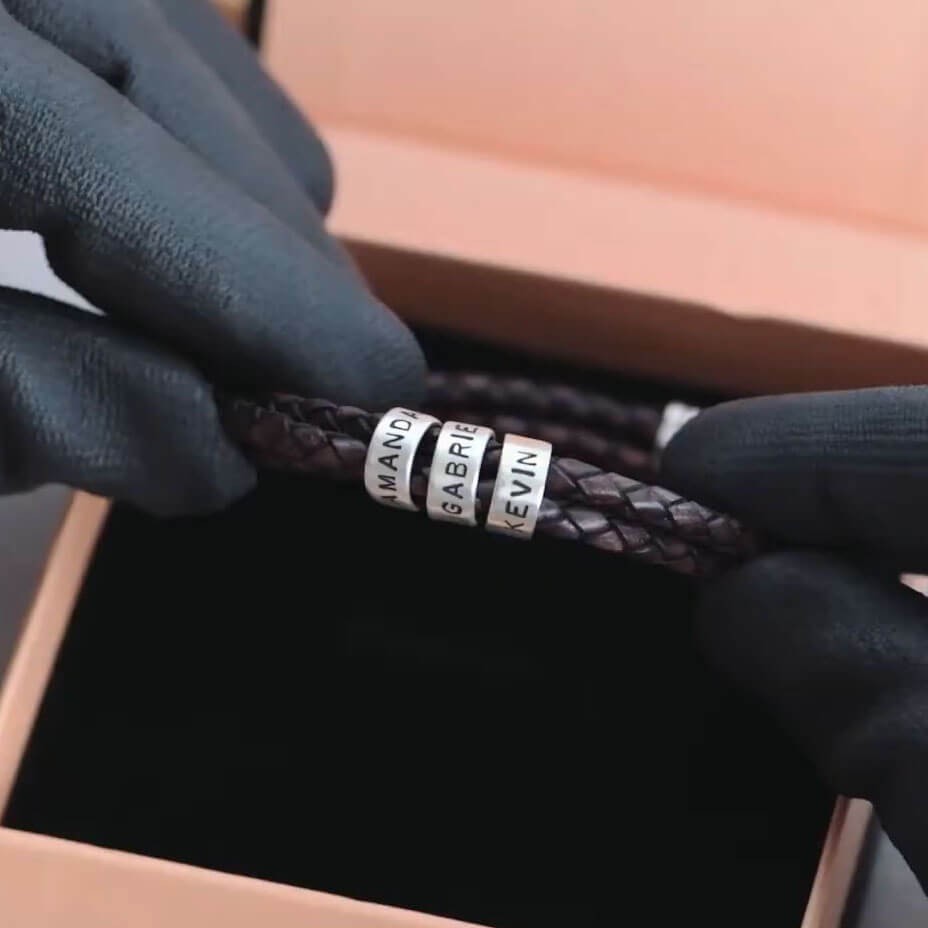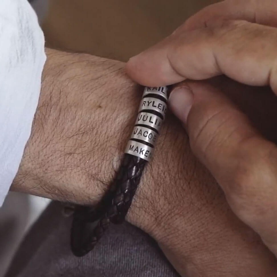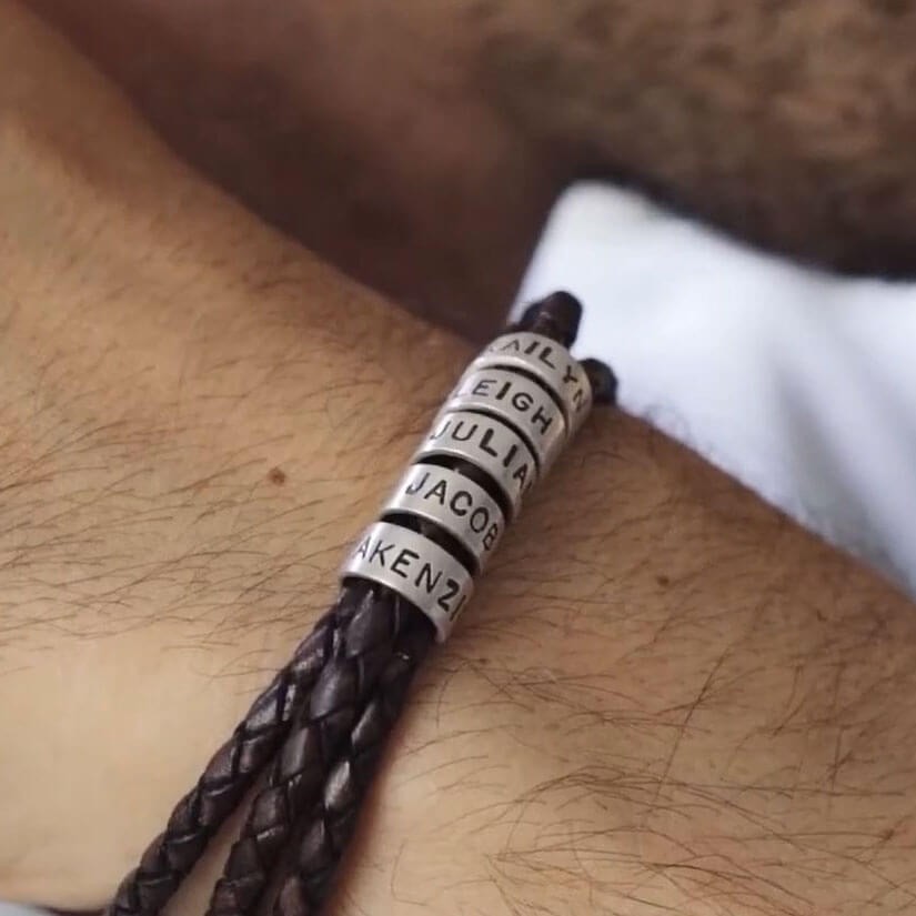 Bracelet de perles en cuir de gravure personnalisé avec 1 à 10 noms de famille cadeau pour papa
