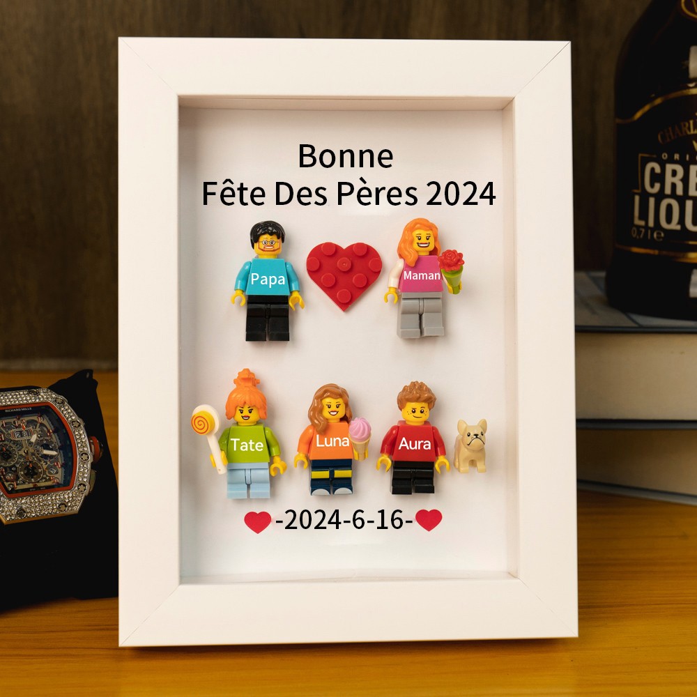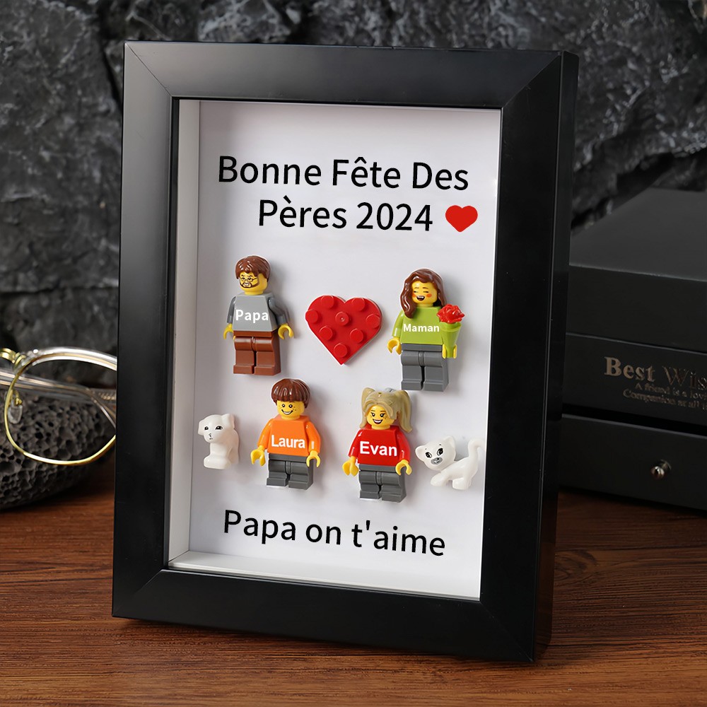 Cadre familial personnalisé avec petite figurine pour cadeau de fête des pères