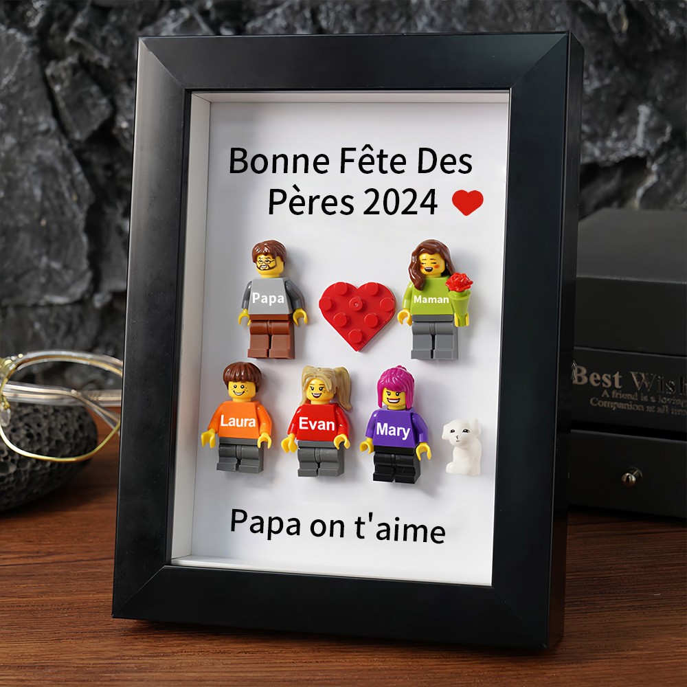 Cadre familial personnalisé avec petite figurine pour cadeau de fête des pères