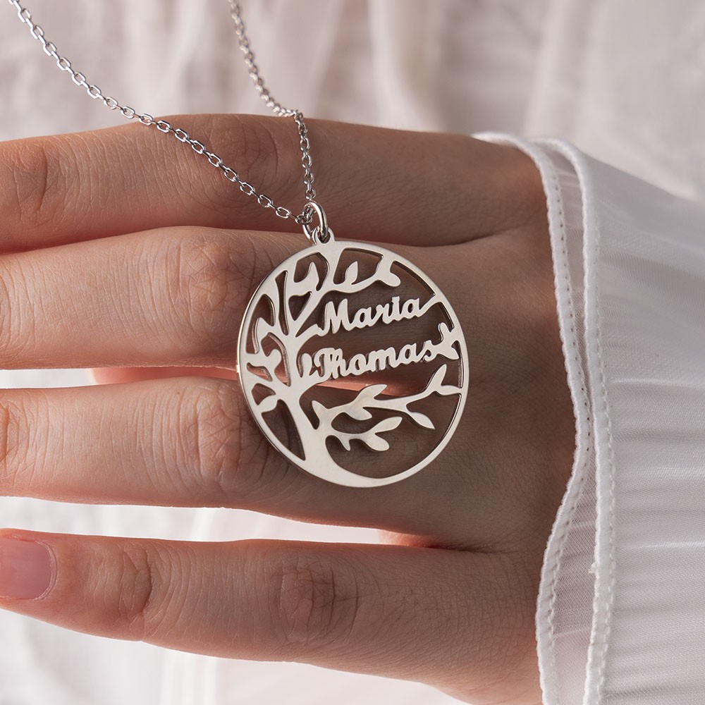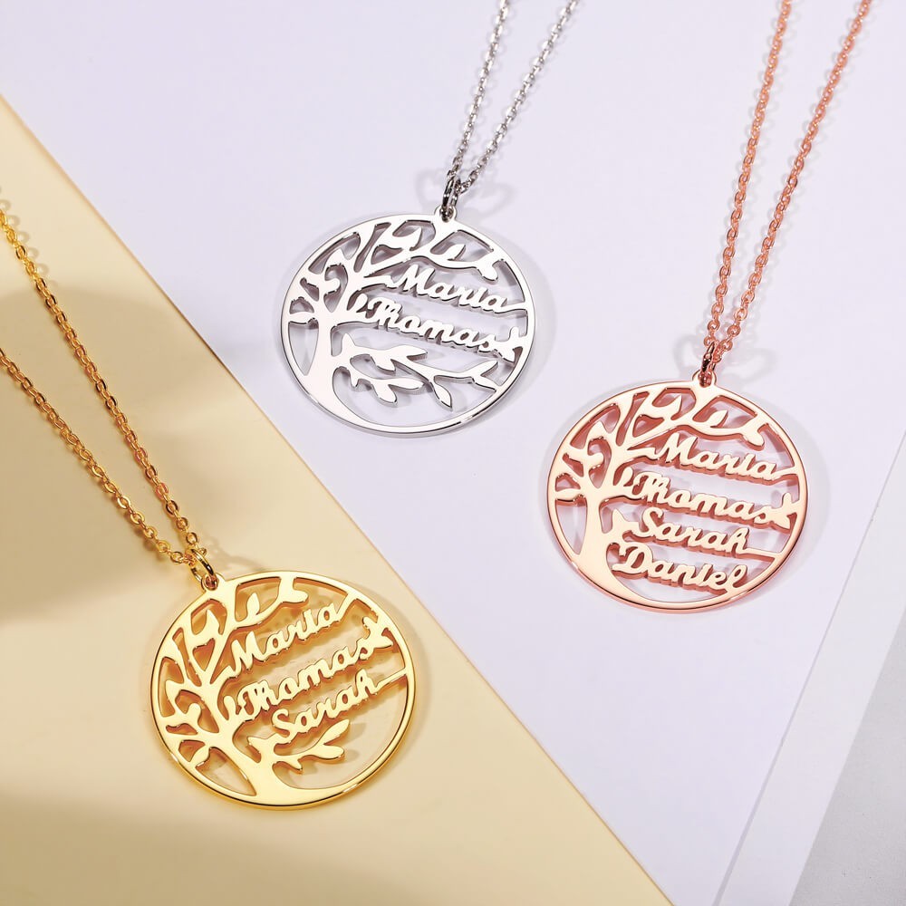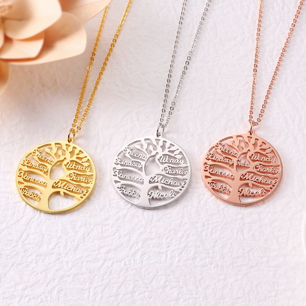 Collier de famille arbre généalogique personnalisé gravé avec 1-8 noms cadeau de Noël pour elle