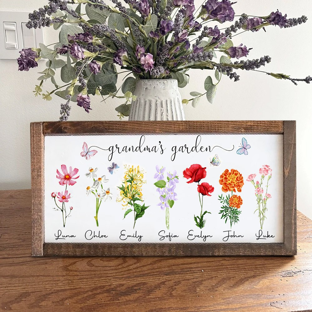 Personalized Grandma's Garden Birth Flower Wood Frame Sign with Grandkids Names Gift Ideas for Grandma Mom Christmas Gifts Mother's Day Gifts