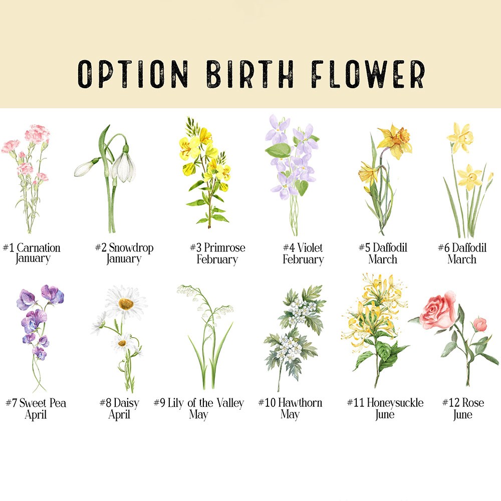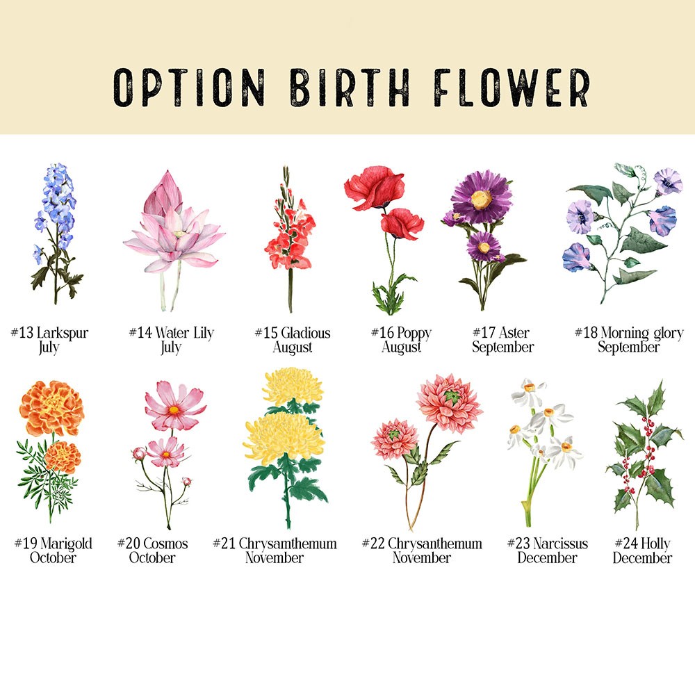This is an heirloom piece created just for you! A bouquet created with birth flowers of each family member. This is such a great gift for a Mama, Grandma or even for an anniversary. Your birth flower sign will be as unique as your family. Whether it's one flower or 20. Each sign has been engraved into a white birch wood with beautiful flowers, your family's names, and finished with a walnut stained frame.