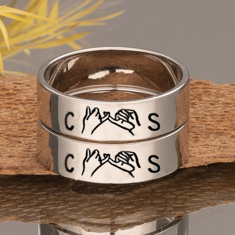 Ensemble de bagues pour couples empilables minimalistes avec initiales personnalisées Pinky Swear