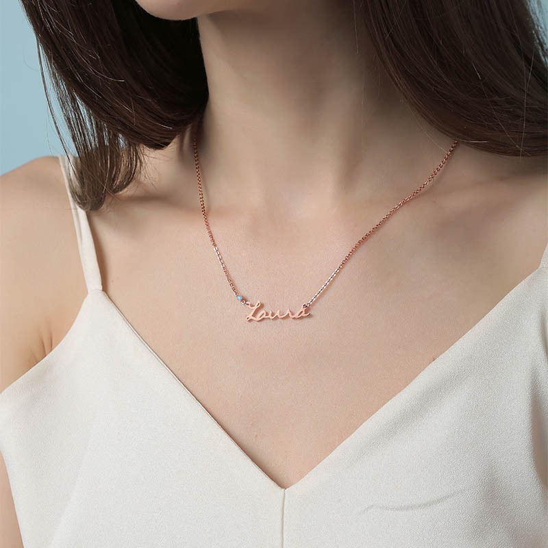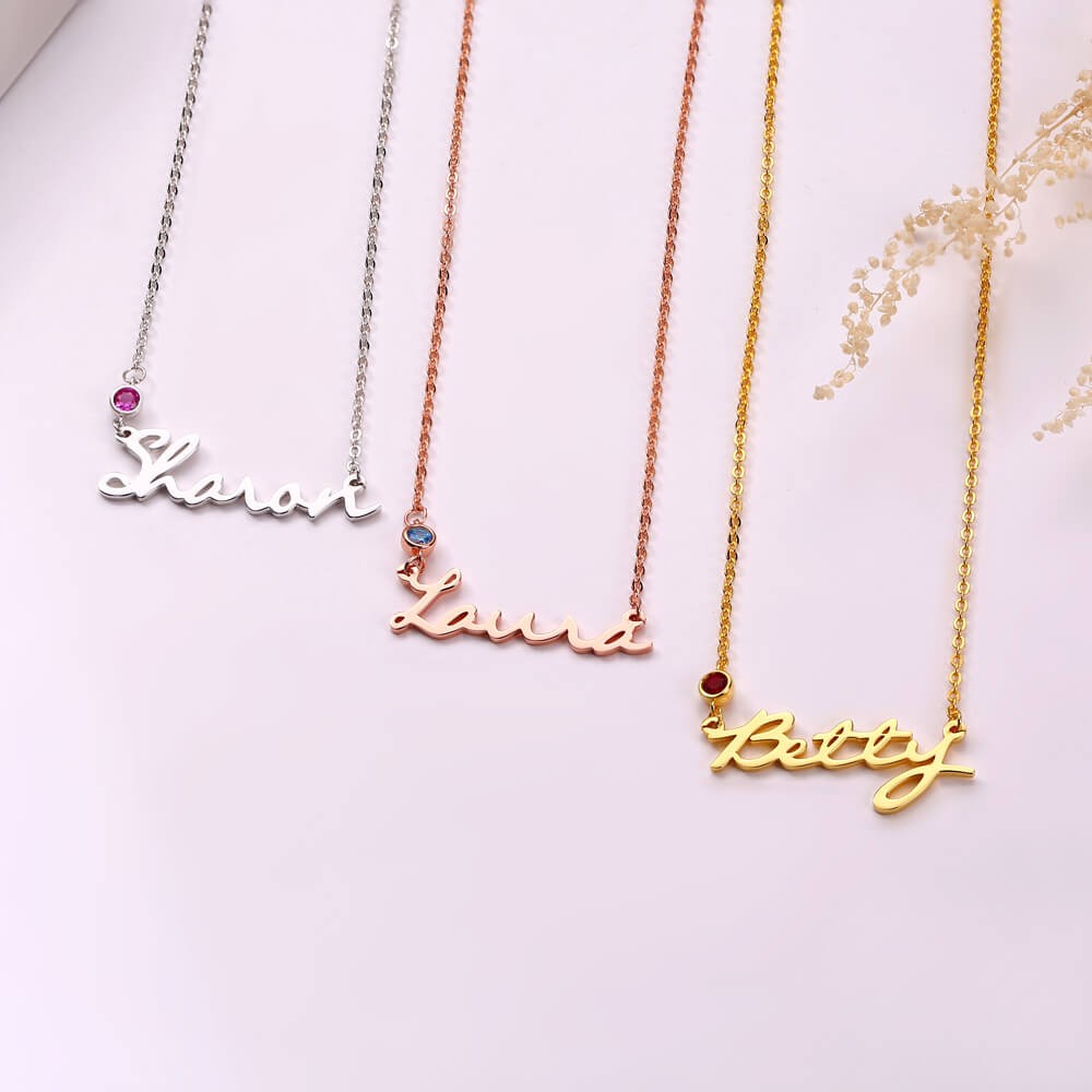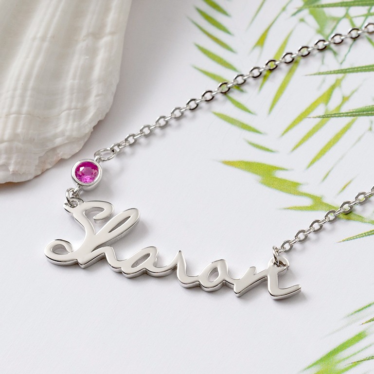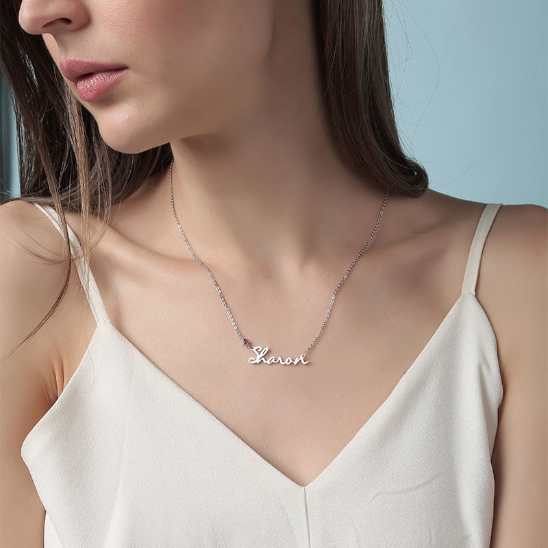 Collier Prénom Personnalisé en Argent avec Pierre de Naissance pour Elle