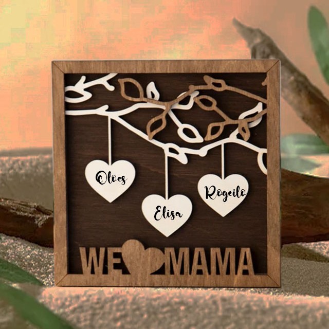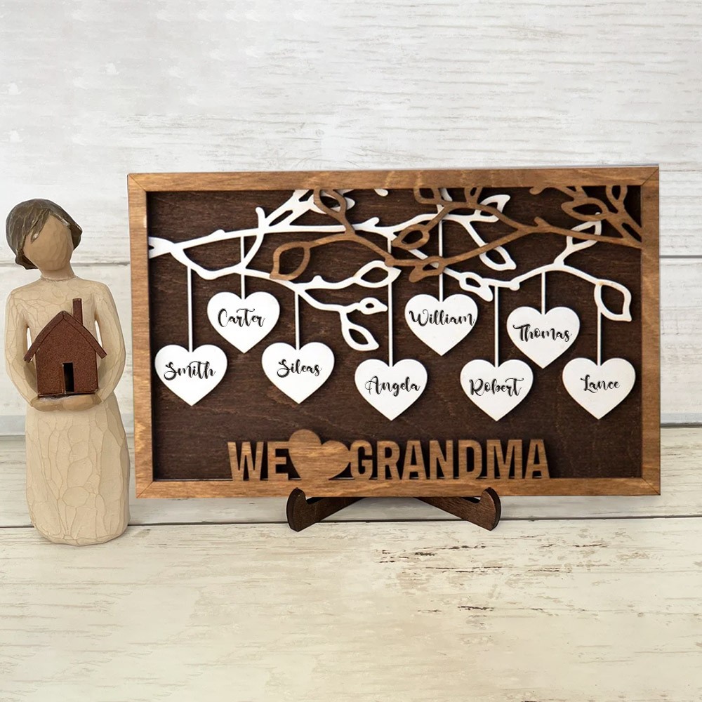 Personalized Wood Family Tree Sign Name Engravings Family Home Decor for Her Him Birthday Mother's Day Gift for Mom Grandma Wife